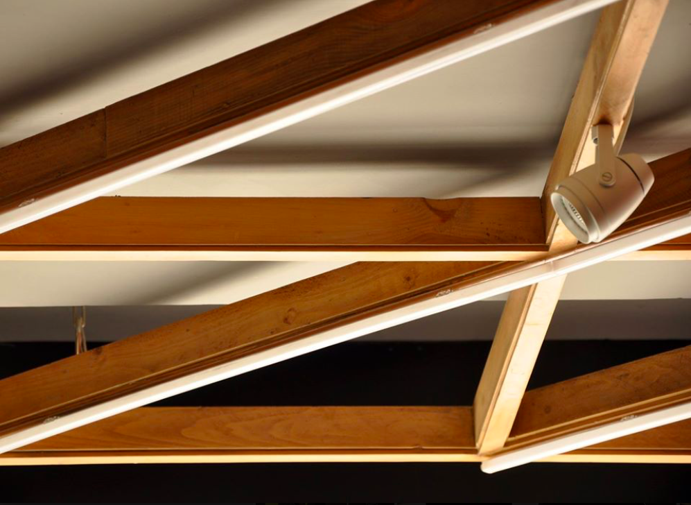 We conceptualized the look and feel of the shop in industrial style, which we thought was appropriate for a shop selling the parts of automobiles. Meticulously selected material palette comprised of cement board for partitions, storage and loft made of mild steel and pine wood suspended ceiling give it a desired raw and brutal look.